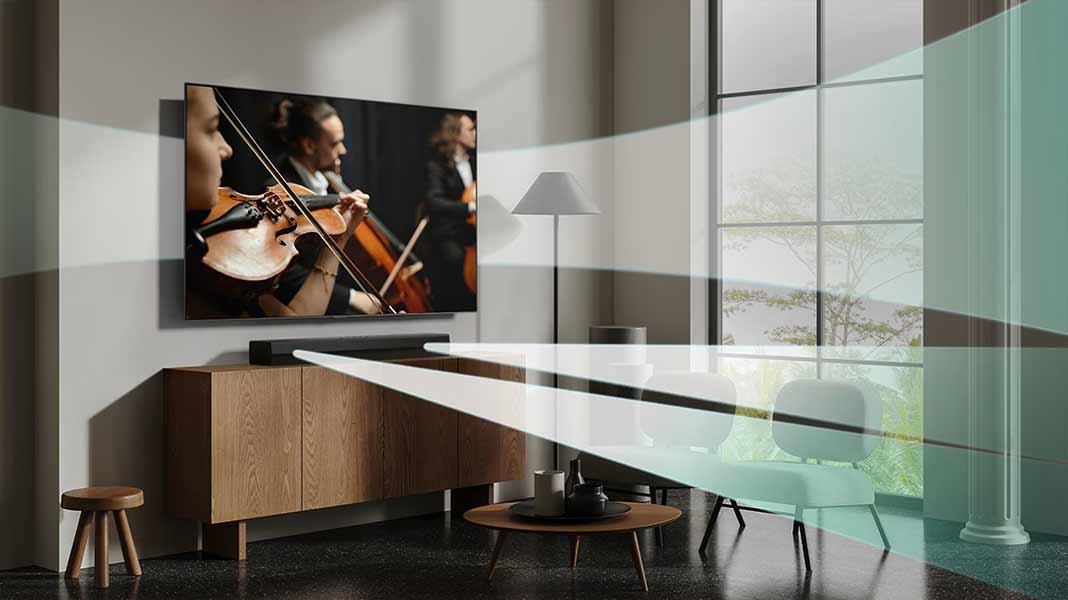 - AI Sound Pro – Το soundbar αναλύει αυτόματα το είδος του περιεχομένου και επιλέγει ανάμεσα σε τρεις βελτιστοποιημένες λειτουργίες, ώστε μουσική, ομιλία και κινηματογραφικός ήχος να παίζουν κάθε φορά με τις σωστές ρυθμίσεις.