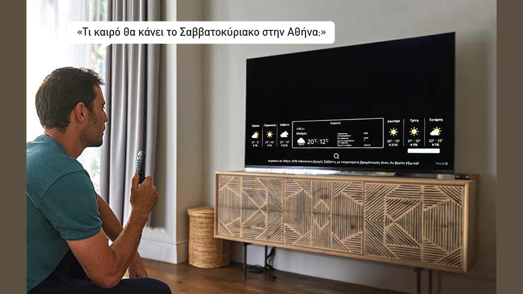 Με το LG ThinQ, η τηλεόραση αποτελεί το κέντρο ελέγχου του έξυπνου σπιτιού και αφού μιλάει πλέον και ελληνικά, δεν υπάρχει πιο εύκολος τρόπος για να πάρετε στα χέρια σας τον έλεγχό του.