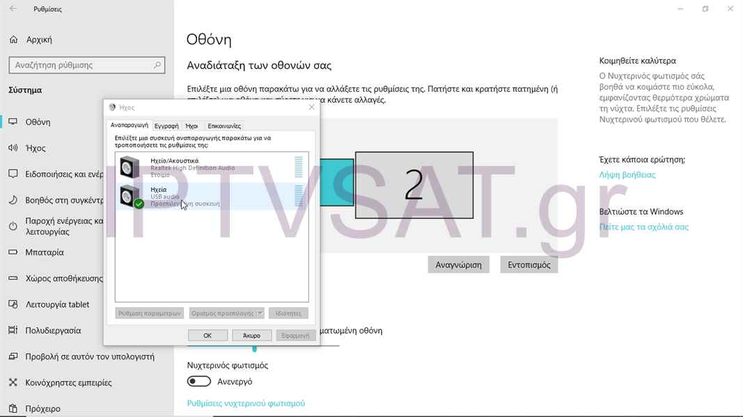 Στη ρύθμιση ήχος, μπορούμε να επιλέξουμε σε ποια οθόνη θα μεταφέρεται ο ήχος.
