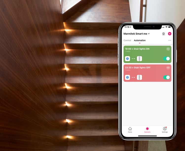 Επίσης, με την εφαρμογή Marmitek Smart me, μπορείτε να δημιουργείτε σενάρια και να επιτρέψετε σε πολλά προϊόντα Smart me να επικοινωνούν μεταξύ τους.