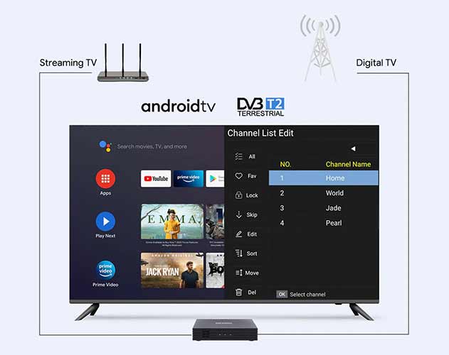 Το βασικό πλεονέκτημα του Mecool KT1 είναι ότι μπορείτε να λαμβάνετε τα επίγεια ψηφιακά κανάλια της περιοχής σας, με ηλεκτρονικό οδηγό προγράμματος και δυνατότητα εγγραφής σε αποθηκευτικό μέσο USB, ενώ στη περίπτωση ύπαρξης tuner DVB-S/S2 μπορείτε να λαμβάνετε δορυφορικά κανάλια από δορυφόρους με εφικτή λήψη στη περιοχή σας.