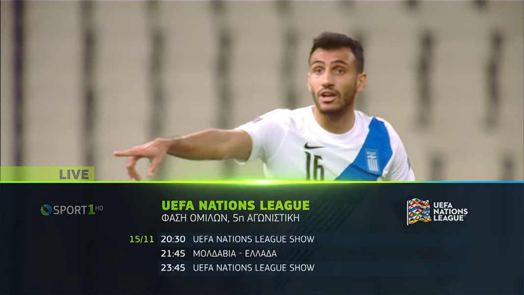 Πριν από την έναρξη του ματς Μολδαβία- Ελλάδα (21.45, COSMOTE SPORT 1HD),οι συνδρομητές θα μπουν στο κλίμα της αναμέτρησης με την εκπομπή «UEFA Nations League Show» (20.30, COSMOTE SPORT 1HD), όπου, μεταξύ άλλων, θα προβληθεί βίντεο με τη μέχρι τώρα πορεία της Ελλάδας στη διοργάνωση και ανάλυση της ενδεκάδας. Την εκπομπή παρουσιάζουν ο Στέφανος Αβραμίδης και ο Βασίλης Σαμπράκος. Μετά το σφύριγμα της λήξης, το «UEFA Nations League Show» θα επιστρέψει με τα highlights του αγώνα και την ψηφιακή ανάλυση των καλύτερων φάσεων του ματς (23.45, COSMOTE SPORT 1HD).