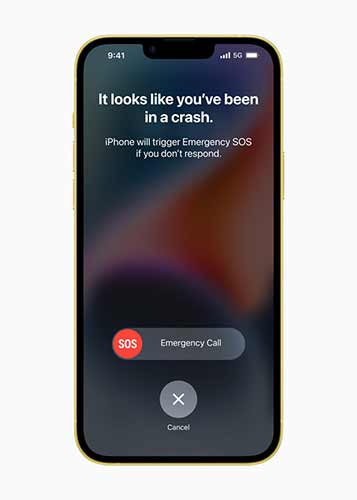 [6] Το Crash Detection έχει σχεδιαστεί για ατυχήματα με τετράτροχα επιβατικά οχήματα με συγκεκριμένα προφίλ μάζας, δύναμης G και ταχύτητας που συνάδουν με σοβαρά, απειλητικά για τη ζωή ατυχήματα. Σχεδιάστηκε για σοβαρές, απειλητικές για τη ζωή συγκρούσεις με μεγάλη πρόσκρουση μπροστά και πίσω, πλαγιολισθήσεις, συγκρούσεις T-bone και ανατροπές. Το Crash Detection είναι διαθέσιμο παγκοσμίως στα iPhone 14, iPhone 14 Plus, iPhone 14 Pro, iPhone 14 Pro Max, Apple Watch Series 8, Apple Watch SE® και Apple Watch Ultra™.