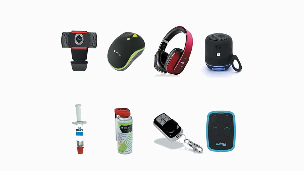 Η πρώτη κατηγορία “Αξεσουάρ υπολογιστών” περιέχει προϊόντα όπως ποντίκια, πληκτρολόγια, Universal βάσεις για υπολογιστές, κάμερες, mouse pad και ακουστικά.