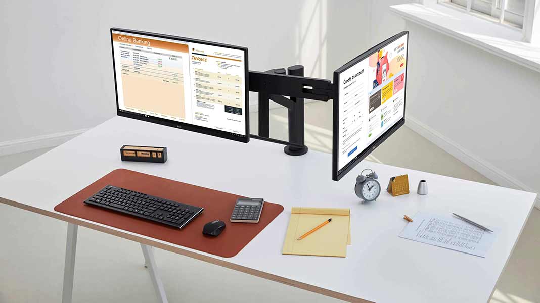 Τόσο τα μοντέλα dual όσο και τα single είναι πλέον πιο εύκολο να εγκατασταθούν χάρη στους αρθρωτούς βραχίονες, που συνδέονται με ασφάλεια χωρίς βίδες σε επιφάνειες γραφείου και τραπέζια μέγιστου πάχους 75 mm. Απαιτώντας πολύ λίγο χώρο για έναν καθαρό, λιτό σταθμό εργασίας, ο σχεδιασμός C-Clamp της LG περιλαμβάνει έναν λεπτό, στιβαρό δακτύλιο στερέωσης που επιτρέπει στους χρήστες να ασφαλίσουν εύκολα τη βάση στην άκρη του γραφείου για να εργαστούν ή αντίστοιχα να απολαύσουν συναρπαστικό gaming σε απίστευτα γρήγορο χρόνο. Επιπλέον, οι δύο LG Ergo οθόνες μπορούν να φορτίσουν ένα φορητό υπολογιστή μέσω του καλωδίου USB-C One, ενώ η Ergo Dual επιτρέπει επίσης τη σύνδεση των οθονών μέσω DisplayPort[1].