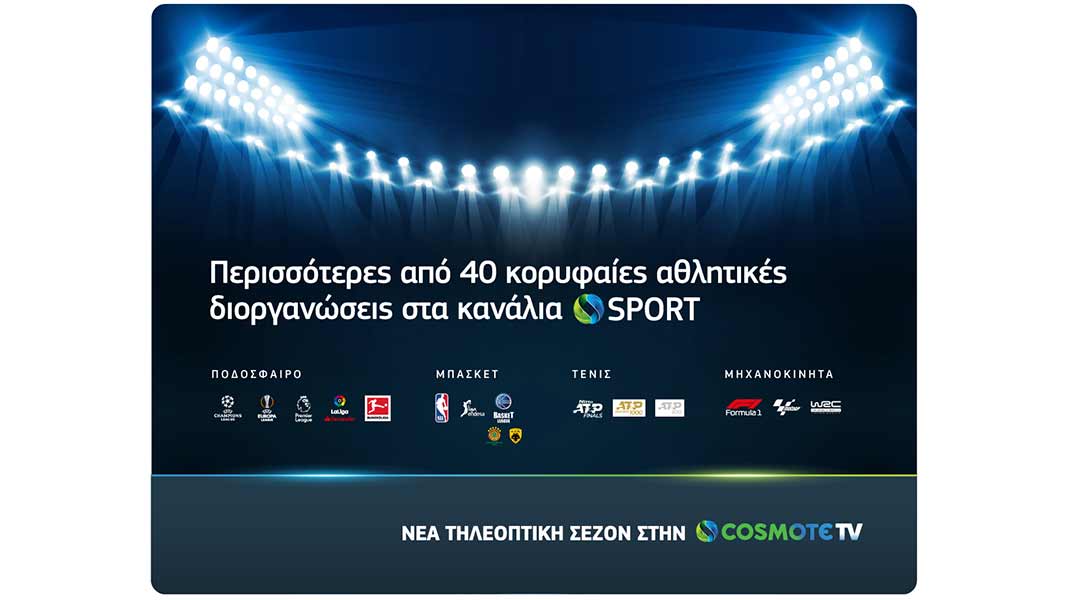 Πλούσιο αθλητικό περιεχόμενο με περισσότερες από 40 κορυφαίες διοργανώσεις σε ποδόσφαιρο, μπάσκετ, τένις, βόλεϊ, μηχανοκίνητα, πυγμαχία και χάντμπολ, αλλά και ποιοτική κάλυψη από τη δημοσιογραφική ομάδα των καναλιών COSMOTE SPORT, θα απολαύσουν οι τηλεθεατές τη νέα τηλεοπτική σεζόν στα κανάλια COSMOTE SPORT.