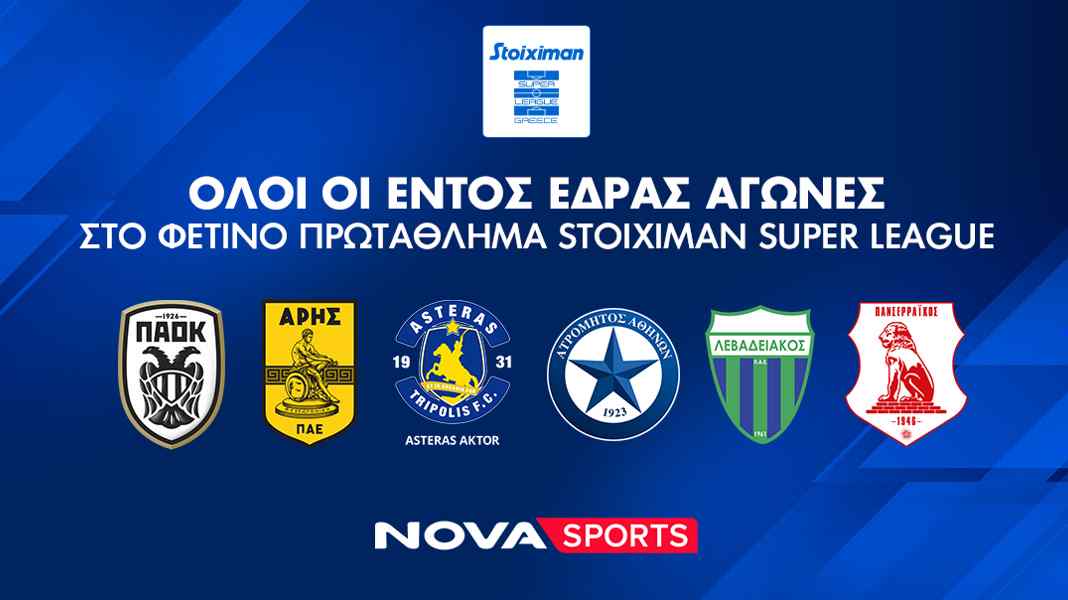 Οι συνδρομητές της Nova και τη φετινή σεζόν είναι έτοιμοι να απολαύσουν το ασυναγώνιστο μπουκέτο αθλητικού περιεχομένου που περιλαμβάνει όλα τα αθλητικά γεγονότα των καναλιών Novasports και Cosmote Sport, όλα στην πλατφόρμα EON! Η Nova, μέλος της United Group, του κορυφαίου παρόχου τηλεπικοινωνιών και media στη Νοτιοανατολική Ευρώπη, ανακοινώνει ότι εξασφάλισε για τους συνδρομητές της, τα τηλεοπτικά δικαιώματα των ΠΑΕΠΑΟΚ, Άρης, Ατρόμητος, Asteras Aktor, Λεβαδειακός και Πανσερραϊκός για την μετάδοση όλων των εντός έδρας αγώνων του πρωταθλήματος Stoiximan Super League, αποκλειστικά μέσα από τα κανάλια Novasports για την επόμενη σεζόν και έτσι οι φίλοι του ποδοσφαίρου έχουν την ευκαιρία να απολαύσουν μέσα από την πλατφόρμα ΕΟΝ πανδαισία απίστευτου αθλητικού θεάματος με όλους τους αγώνες της Stoiximan Super League (μέσω των Novasports και Cosmote Sport).