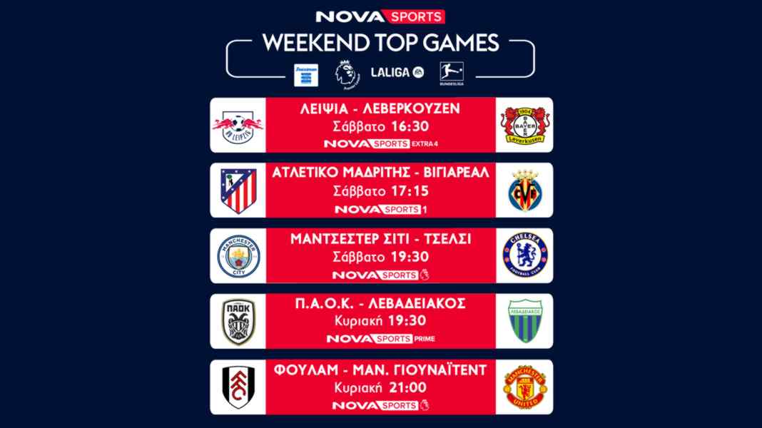 Στην Premier League, το κορυφαίο πρωτάθλημα στο κόσμο, το ενδιαφέρον στρέφεται στο ντέρμπι Μάντσεστερ Σίτι – Τσέλσι (25/1, 19:30) καθώς και στους αγώνες Γουλβς-Άρσεναλ (25/1, 17:00) και Λίβερπουλ-Ίπσουιτς (25/1, 17:00) που θα μεταδοθούν από τα κανάλια Novasports. Η Premier League θα πλαισιωθεί με τις εκπομπές «Premier League Kick Off» και «Premier League The Show» με τον Άγγελο Στυλιάδη και τον Γιώργο Σαμαρά.