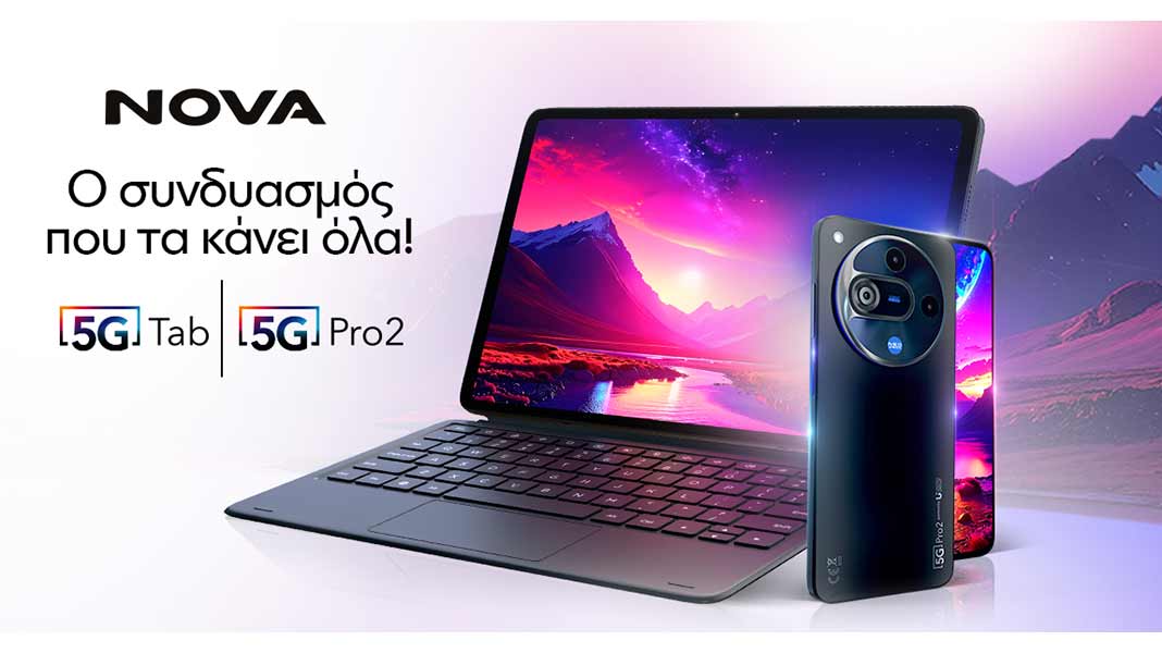 Η Nova, μέλος της United Group του κορυφαίου παρόχου τηλεπικοινωνιών και media στη Νοτιοανατολική Ευρώπη, παρουσιάζει το νέο οικοσύστημα καινοτόμων συσκευών που περιλαμβάνει το Nova 5G Pro 2 Smartphone και το Nova 5G Tab με αποσπώμενο πληκτρολόγιο, φέρνοντας την τελευταία λέξη της τεχνολογίας πιο κοντά στους συνδρομητές της.