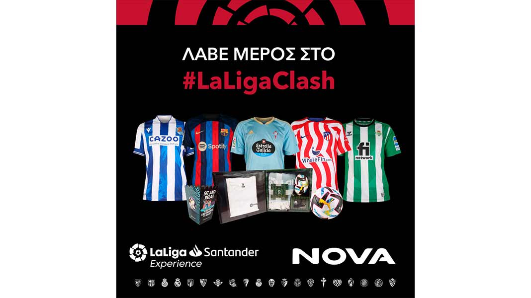 Η Nova, μέλος της United Group, του κορυφαίου παρόχου τηλεπικοινωνιών και media στη Νοτιοανατολική Ευρώπη και η LaLiga, το ισπανικό πρωτάθλημα ποδοσφαίρου που απολαμβάνουν οι φίλαθλοι αποκλειστικά στο «γήπεδο» του Novasports, δίνουν την ευκαιρία στους συνδρομητές Nova να ζήσουν μια μοναδική εμπειρία μέσα από μία σειρά 5 διαγωνισμών, LaLiga Clash που θα ξεκινήσει στις 6 Φεβρουαρίου και θα ολοκληρωθεί τον Μάρτιο.