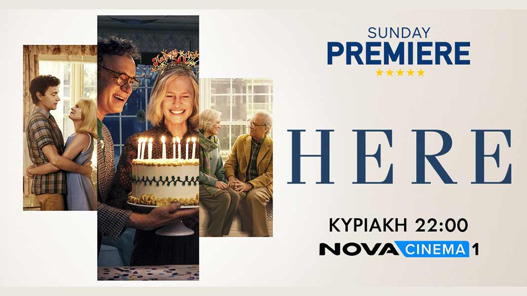 Τη δραματική ταινία «Here» (2024, διάρκειας 99’) με τους Tom Hanks, Robin Wright, Paul Bettany σε σκηνοθεσία του Robert Zemeckis θα απολαύσουν οι σινεφίλ την Κυριακή 19 Οκτωβρίου στις 22:00 στο Novacinema1, στη ζώνη Sunday Premiere της Nova!