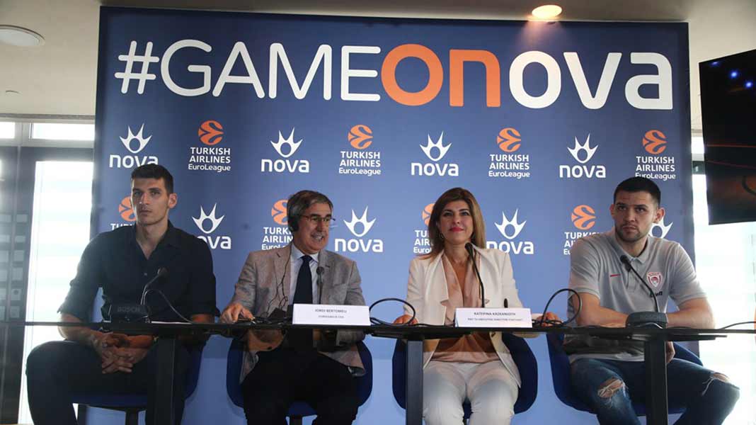 Η Nova, κορυφαίος πάροχος οικιακής ψυχαγωγίας και επικοινωνίας και η EuroLeague, η κορυφαία ευρωπαϊκή διασυλλογική διοργάνωση στο χώρο του μπάσκετ, παρουσία του Υφυπουργού Αθλητισμού και Πολιτισμού κ. Λευτέρη Αυγενάκη και εκπροσώπων της ΚΑΕ Παναθηναϊκός ΟΠΑΠ και της ΚΑΕ Ολυμπιακός παραχώρησαν την Παρασκευή 20 Σεπτεμβρίου, κοινή Συνέντευξη Τύπου με αφορμή την επέκταση της συνεργασίας τους μέχρι το 2023. Την εκδήλωση συντόνισαν οι δημοσιογράφοι των καναλιών Novasports, Γιώργος Συρίγος και Δώρα Παντέλη.