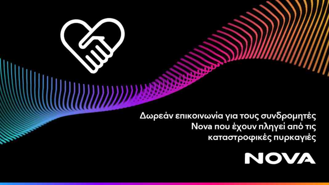 Η Nova, μέλος της United Group, του κορυφαίου παρόχου τηλεπικοινωνιών και Media στη Νοτιοανατολική Ευρώπη, κατανοώντας τις αυξημένες ανάγκες επικοινωνίας, λόγω των καταστροφικών πυρκαγιών σε περιοχές της Αττικής, Εύβοιας, Κυθήρων, Μεσσηνίας και Χανίων Κρήτης, ενημερώνει τους συνδρομητές της, ότι βρίσκεται κοντά τους, παρέχοντας δωρεάν υπηρεσίες επικοινωνίας.