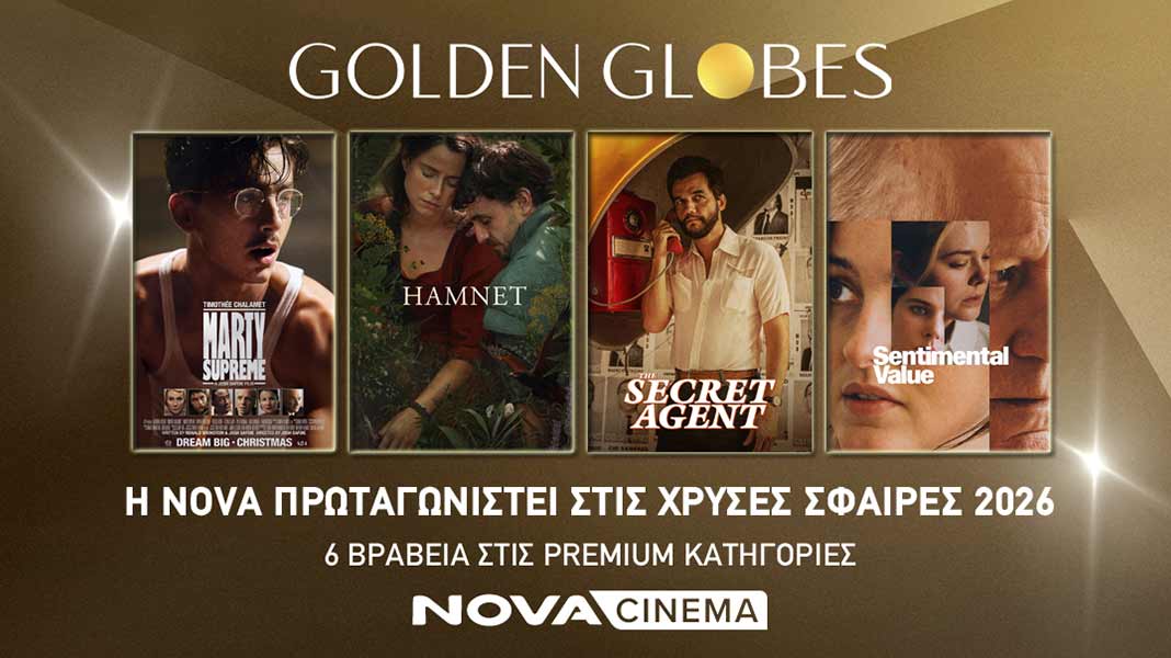 Η Nova, συνεχίζει να πρωταγωνιστεί στα μεγαλύτερα διεθνή βραβεία, αποσπώντας 6 βραβεία σε όλες τις Premium Κατηγορίες των φετινών Χρυσών Σφαιρών 2026 για ταινίες που θα προβληθούν αποκλειστικά από τα κανάλια της, τα Novacinema, τον απόλυτο κινηματογραφικό προορισμό!