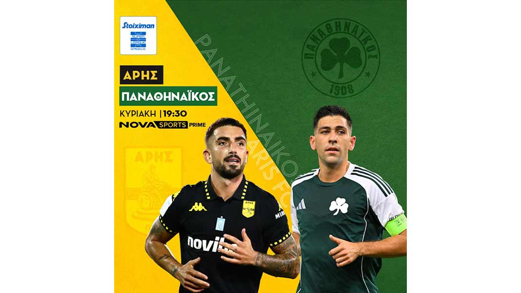 19:30 Stoiximan Super League: Άρης-Παναθηναϊκός Novasports Prime σε περιγραφή του Ισίδωρου Πρίντεζη και ρεπορτάζ του Ευγένιου Δαδαλιάρα και του Γιώργου Αργυρόγλου