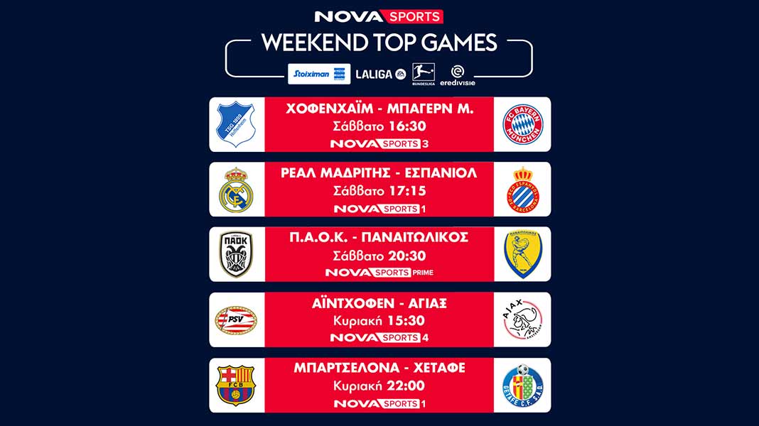 Παράλληλα, οι φίλοι του ποδοσφαίρου θα απολαύσουν στα κανάλια Novasports το ντέρμπι Αϊντχόφεν – Άγιαξ (21/9, 15:30) για την 6η αγωνιστική της ολλανδικής Eredivisie, καθώς και αγώνες από τα συναρπαστικά πρωταθλήματα της 2.Bundesliga και της LaLiga2.