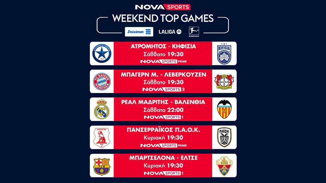 ΑρχικήPayTVNovaNova: Πλούσιο θέαμα με όλη τη Stoiximan Super League, Μπάγερν – Λεβερκούζεν,...
