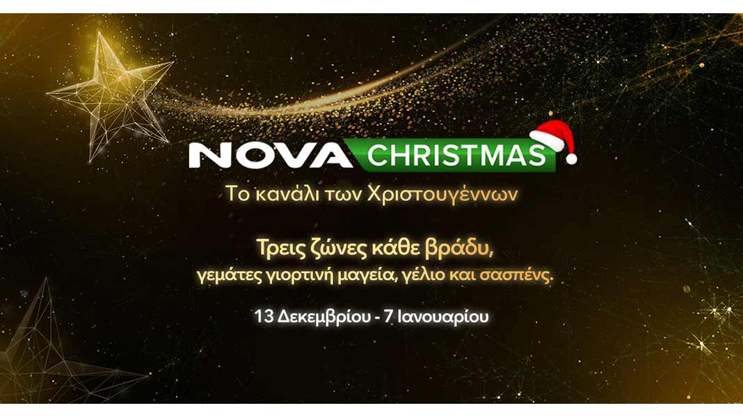 H Nova, αναδεικνύει και φέτος τη λάμψη των Χριστουγέννων, από το Σάββατο 13 Δεκεμβρίου 2025 έως και την Τετάρτη 7 Ιανουαρίου 2026 με το αγαπημένο θεματικό κανάλι NovaChristmas με τρεις ζώνες (20:00, 22:00, 23:30) με ταινίες για όλη την οικογένεια, ακολουθίες από Ιερούς Ναούς και εκπομπές με τίτλο “Χριστούγεννα Σημαίνουν”.