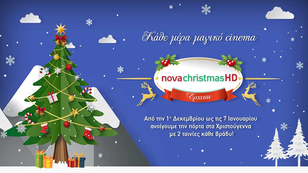 Από την Τρίτη 1η Δεκεμβρίου και μέχρι και την Πέμπτη 7 Ιανουαρίου, η Nova «ανοίγει την πόρτα» στην μαγεία, τη φαντασία, την περιπέτεια και τη χαρά, μέσω του NovachristmasHD! Το χριστουγεννιάτικό κανάλι της Nova έρχεται με επιλεγμένες πρεμιέρες ταινιών, μεταγλωττισμένες παιδικές ταινίες και οικογενειακές περιπέτειες φαντασίας, κάθε βράδυ με δύο ταινίες, από τις 20:00.