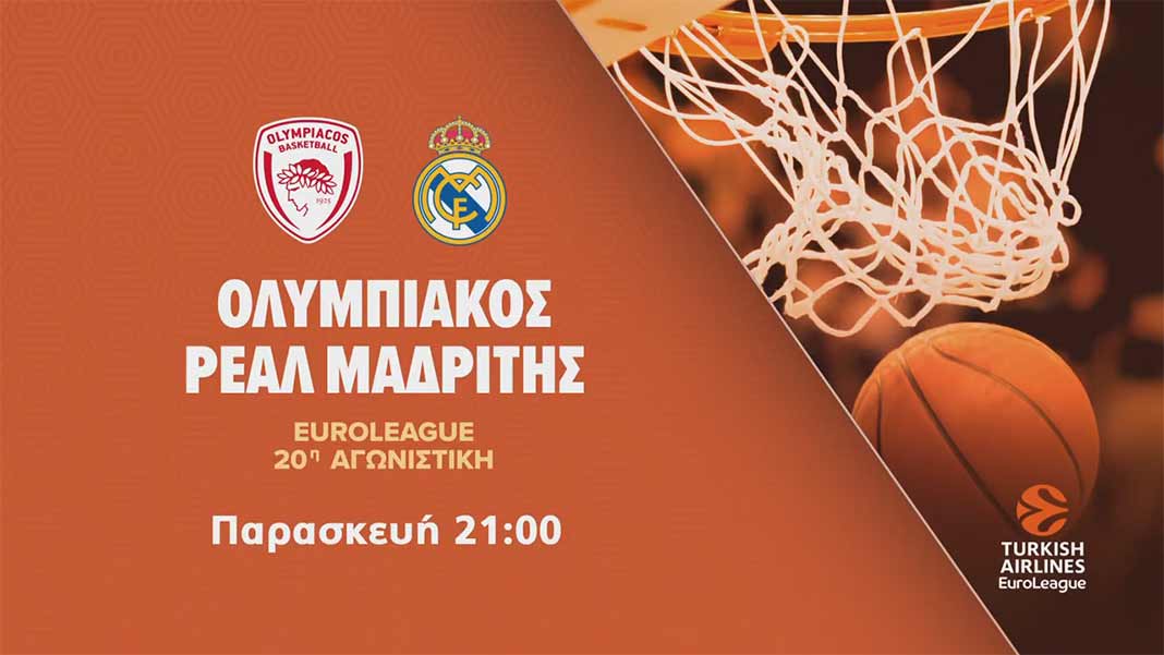 21:00 EuroLeague: Ολυμπιακός-Ρεάλ Μαδρίτης Novasports Prime σε περιγραφή του Νικήτα Αυγουλή, σχόλιο του Δημήτρη Καρύδα και ρεπορτάζ της Δώρας Παντέλη