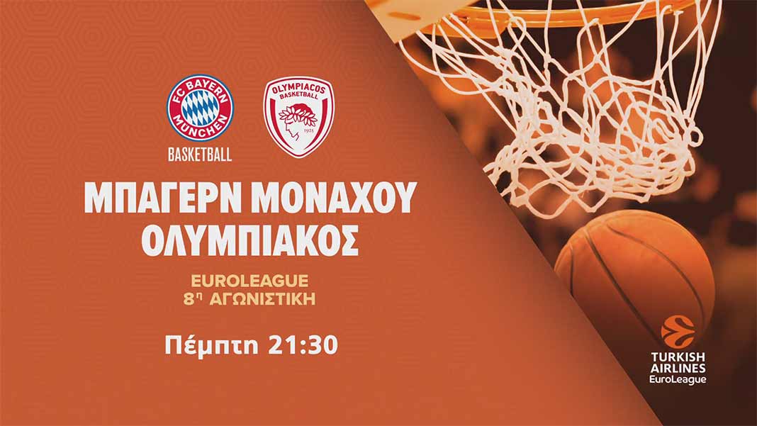 • 21:30 EuroLeague: Μπάγερν Μονάχου-Ολυμπιακός Novasports Prime σε περιγραφή του Χρήστου Καούρη