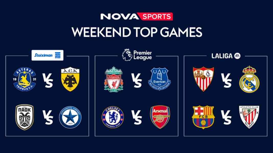 Οι συνδρομητές Novasports θα έχουν την ευκαιρία να απολαύσουν μοναδικές συγκινήσεις και από τα ευρωπαϊκά γήπεδα! Στην Premier League, το κορυφαίο πρωτάθλημα στον κόσμο που παίζει αποκλειστικά στο Novasports και με τους 380 αγώνες LIVE, δεσπόζουν τα ντέρμπι Τσέλσι – Άρσεναλ και Λίβερπουλ – Έβερτον. Στη LaLiga EA Sports τα φώτα στρέφονται στις αναμετρήσεις Σεβίλλη – Ρεάλ Μαδρίτης και Μπαρτσελόνα – Αθλέτικ Μπιλμπάο ενώ στη Bundesliga ξεχωρίζουν τα παιχνίδια Μαιντς – Μπάγερν και Ντόρτμουντ – Βέρντερ Βρέμης.