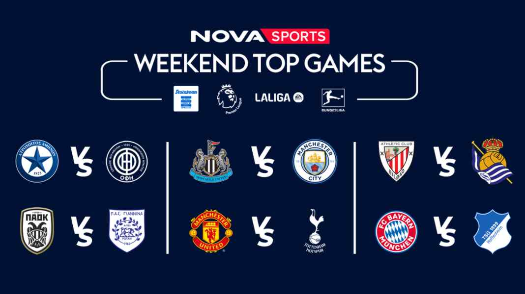 Συναρπαστικό ποδοσφαιρικό θέαμα με 40 LIVE αγώνες έρχεται και αυτή την εβδομάδα αποκλειστικά στο γήπεδο του Novasports! Με τους αγώνες, ΠΑΟΚ – ΠΑΣ Γιάννινα, Ατρόμητος – ΟΦΗ, Αστέρας Τρίπολης – Βόλος να δεσπόζουν από το ελληνικό πρωτάθλημα ποδοσφαίρου, με τις αναμετρήσεις Μάντσεστερ Γ. – Τότεναμ, Νιουκάστλ – Μάντεστερ Σίτι για την Premier League, με Αλμερία – Χιρόνα και το ντέρμπι των Βάσκων, Αθλέτικ Μπιλμπάο-Ρεάλ Σοσιεδάδ για την LaLiga EA Sports, με την επιστροφή της Bundesliga στην αγωνιστική δράση και Μπάγερν – Χόφενχαϊμ, Λανς – Παρί Σεν Ζερμέν για τη Ligue 1 και προημιτελικά στο Coppa Italia με Λάτσιο – Ρόμα!