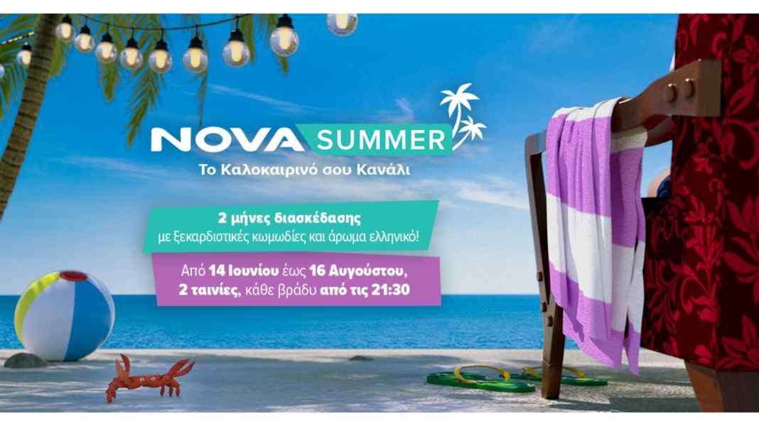 Tο αγαπημένο pop up κανάλι Novasummer είναι εδώ και είναι έτοιμο να ανεβάσει την καλοκαιρινή διάθεση! Από 14 Ιουνίου και για 2 ολόκληρους μήνες (μέχρι τις 16 Αυγούστου) οι συνδρομητές θα απολαύσουν τις καλύτερες επιλογές από τις πλέον ξεκαρδιστικές κωμικές ταινίες, αφιερώματα και θα πάρουν γεύση Ελλάδας αυτό το καλοκαίρι με δύο ταινίες back to back κάθε βράδυ από τις 21:30.