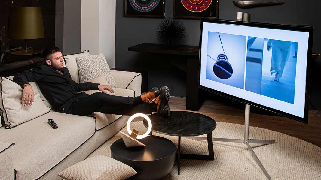 Η LG OLED Gallery TV 65’’, τοποθετημένη στο ειδικά διαμορφωμένο Gallery stand[1], εντυπωσίασε ιδιαίτερα τον σχεδιαστή καθώς όπως σχολίασε, δίνει την αίσθηση ενός πραγματικού έργου τέχνης και κοσμεί τον χώρο με μοναδικά εκλεπτυσμένο τρόπο. Με πολυετή εμπειρία στην εσωτερική διακόσμηση και την αισθητική του χώρου, ο σχεδιαστής αναφέρθηκε στο εξαιρετικό design της τηλεόρασης, που πέραν από την κομψή τοποθέτηση στον χώρο, διευκολύνει την καθημερινότητα ενός designer με τις λειτουργίες που διαθέτει, δηλώνοντας την πρόθεσή του για μελλοντική χρήση της τηλεόρασης στο επαγγελματικό του περιβάλλον.