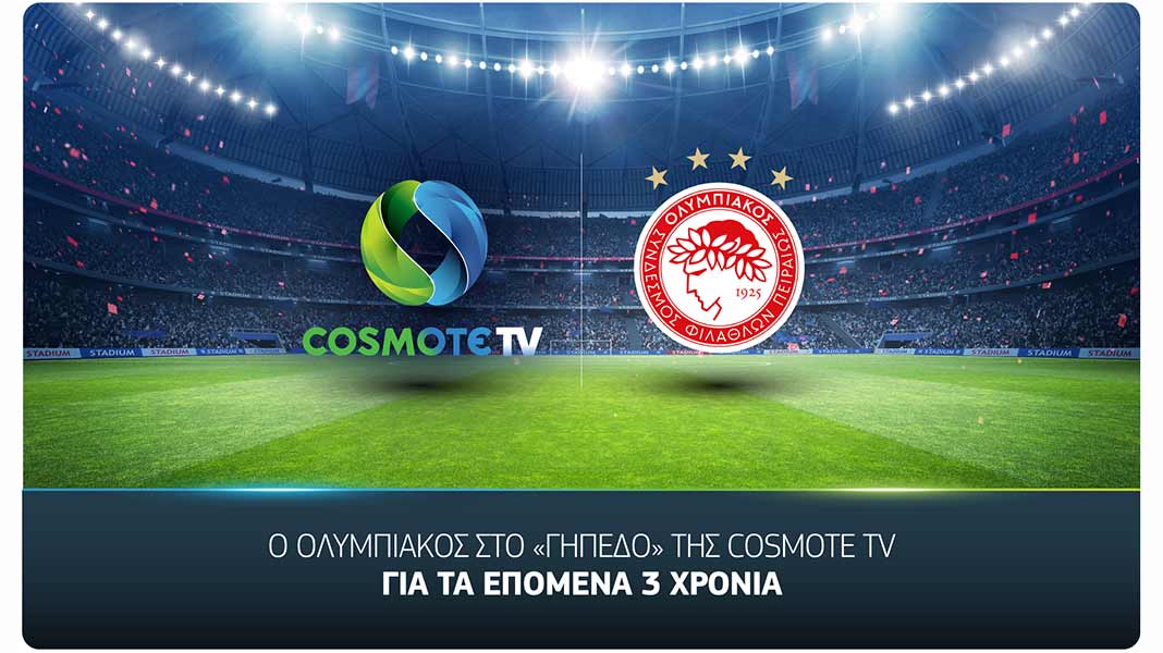Ο Ολυμπιακός θα παίζει μπάλα αποκλειστικά στο «γήπεδο» της COSMOTE TV, έως το 2025. Η συμφωνία των δύο πλευρών θα ενεργοποιηθεί από τη σεζόν 2022-2023 και περιλαμβάνει τη μετάδοση όλων των εντός έδρας αγώνων για το Πρωτάθλημα της Super League, τους εντός έδρας ευρωπαϊκούς προκριματικούς αγώνες, τους εντός και εκτός έδρας φιλικούς αγώνες, καθώς και σημαντικούς αγώνες των Πρωταθλημάτων Υποδομής.