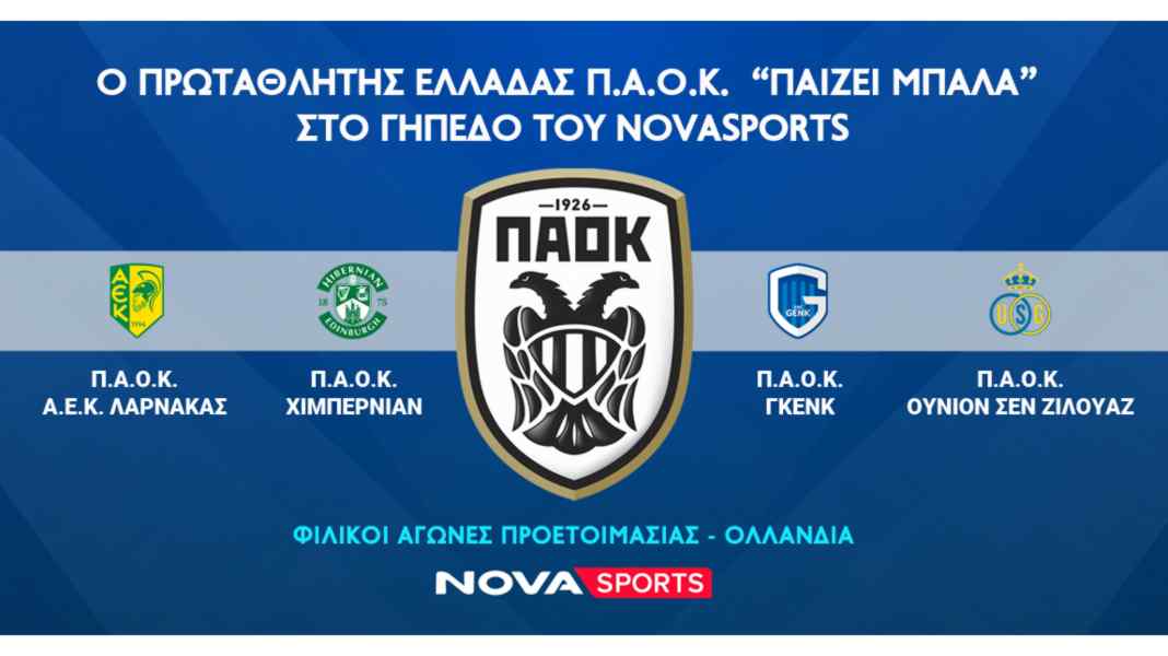 Ο πρωταθλητής Ελλάδας ΠΑΟΚ βρίσκεται ήδη σε ρυθμούς προετοιμασίας για τη νέα σεζόν με το Novasports έχει εξασφαλίσει τη μετάδοση 4 δυνατών φιλικών αγώνων που θα δώσει ο «Δικέφαλος» του Βορρά επί ολλανδικού εδάφους! Η ομάδα του Ραζβάν Λουτσέσκου θα βρεθεί στην Ολλανδία όπου και θα πραγματοποιήσει το βασικό στάδιο του σχεδιασμού της για τη νέα αγωνιστική περίοδο και θα αντιμετωπίσει κατά σειρά την κυπριακή ΑΕΚ Λάρνακας, την σκωτσέζικη Χιμπέρνιαν και τις βελγικές Γκενκ και Ουνιόν Σεν Ζιλουάζ. Στην περιγραφή των αγώνων θα είναι ο Γιάννης Πάγκος και στο ρεπορτάζ ο Κωστής Μπότσαρης.