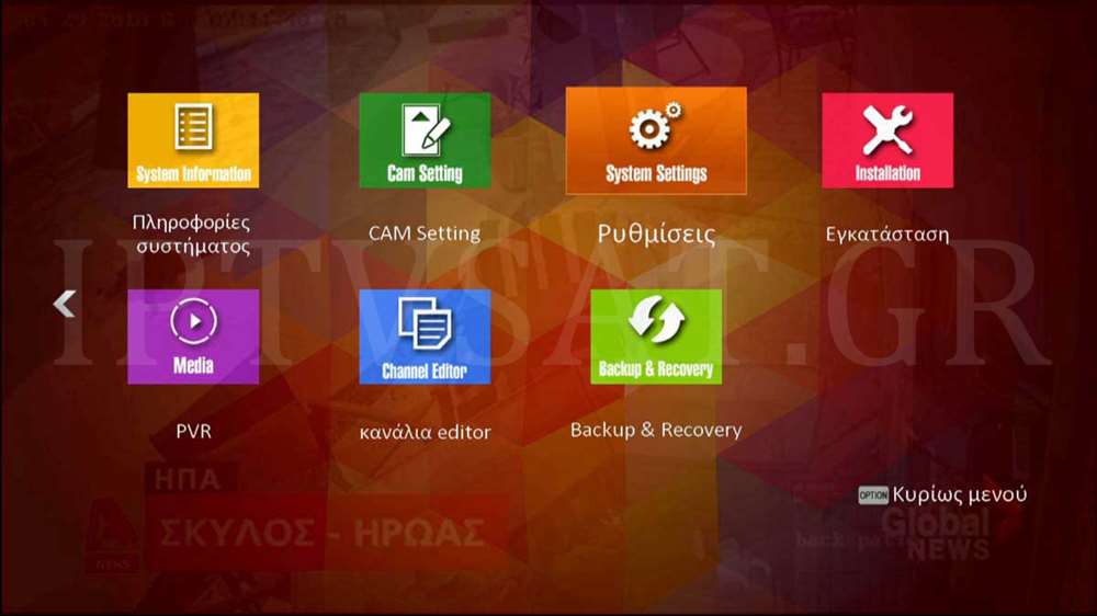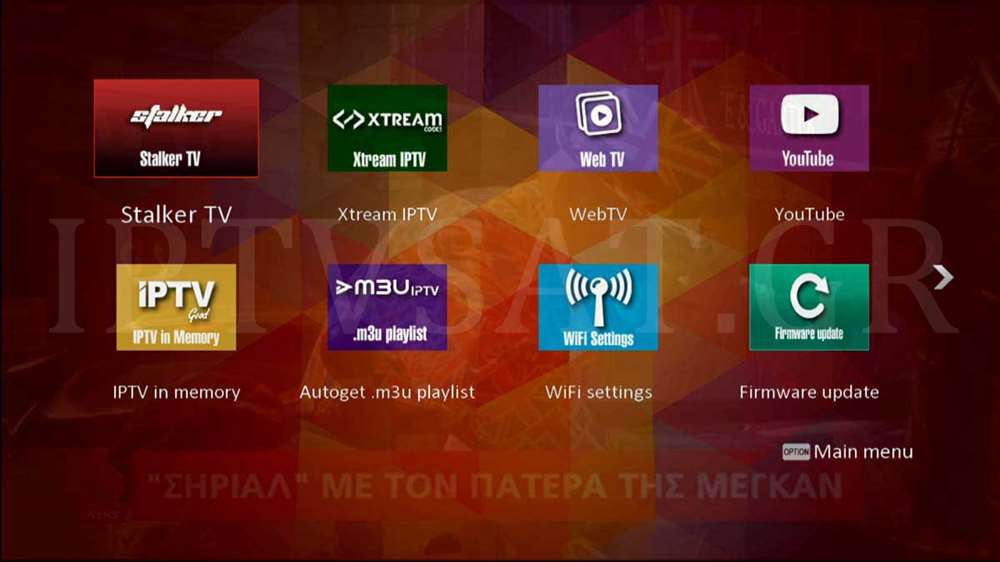 Καταρχήν, να σημειώσουμε ότι μπορούμε να θέσουμε την έναρξη μενού με όποια λειτουργία επιθυμούμε, όπως πχ τηλεόραση, IPTV στη μνήμη, Portal 1,2,3,4, Xtream IPTV, KODI και πολλά άλλα. Το λογισμικό που χρησιμοποιήσαμε στη δοκιμή, ήταν το 1.04.61, στου οποίου το βασικό μενού βρίσκουμε 2 τμήματα με τις εξής επιλογές: Πληροφορίες συστήματος, CAM Setting, Ρυθμίσεις, Εγκατάσταση, PVR, Κανάλια editor και Backup & Recovery, ενώ στο δεύτερο τμήμα βρίσκουμε τις επιλογές Stalker TV, Xtream IPTV, WebTV, YouTube, IPTV στη μνήμη, Autoget .m3u playlists, Ρυθμίσεις WiFi και Ενημέρωση υλικολογισμικού.