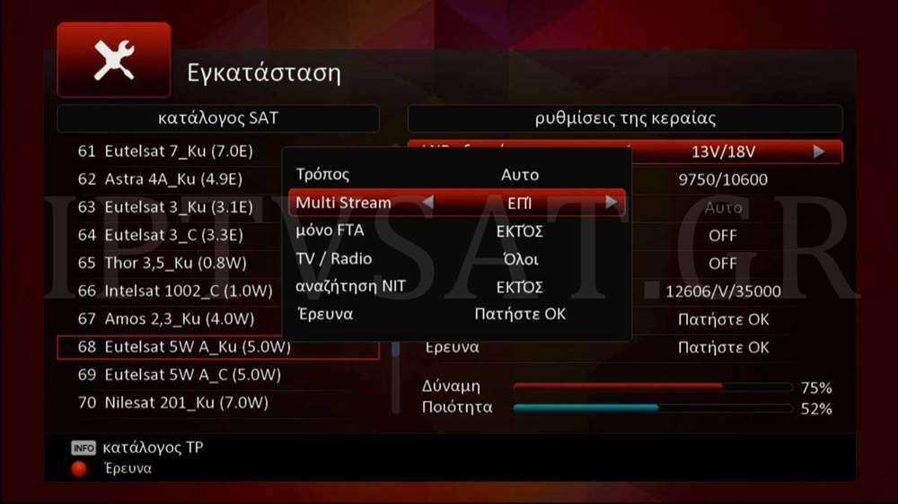 Μέχρι πρόσφατα, οι δέκτες δεν μπορούσαν να λαμβάνουν κανάλια που εξέπεμπαν με την τεχνική multistream, ωστόσο αυτό πλέον αλλάξει με έναν εκπρόσωπο τέτοιων δεκτών τον Octagon SX88. Σε multistream εκπέμπουν κανάλια από διάφορες τροχιακές θέσεις, με συνήθη σκοπό την τροφοδοσία επίγειων δικτύων εκπομπής (T2 MI). Ιδιαίτερα δημοφιλή είναι τα ιταλικά κανάλια της Mediaset από τις 5 μοίρες δυτικά. Στη διαδρομή Εγκατάσταση με το κόκκινο πλήκτρο, εμφανίζονται επιλογές ανίχνευσης, ενώ συμπεριλαμβάνεται και η επιλογή Multi Stream, την οποία ενεργοποιούμε εάν επιθυμούμε και κανάλια multistream, ενώ στο πεδίο Τρόπος, θα δείτε τις επιλογές Auto, TP και Τυφλή ή διεθνώς Blind Scan.