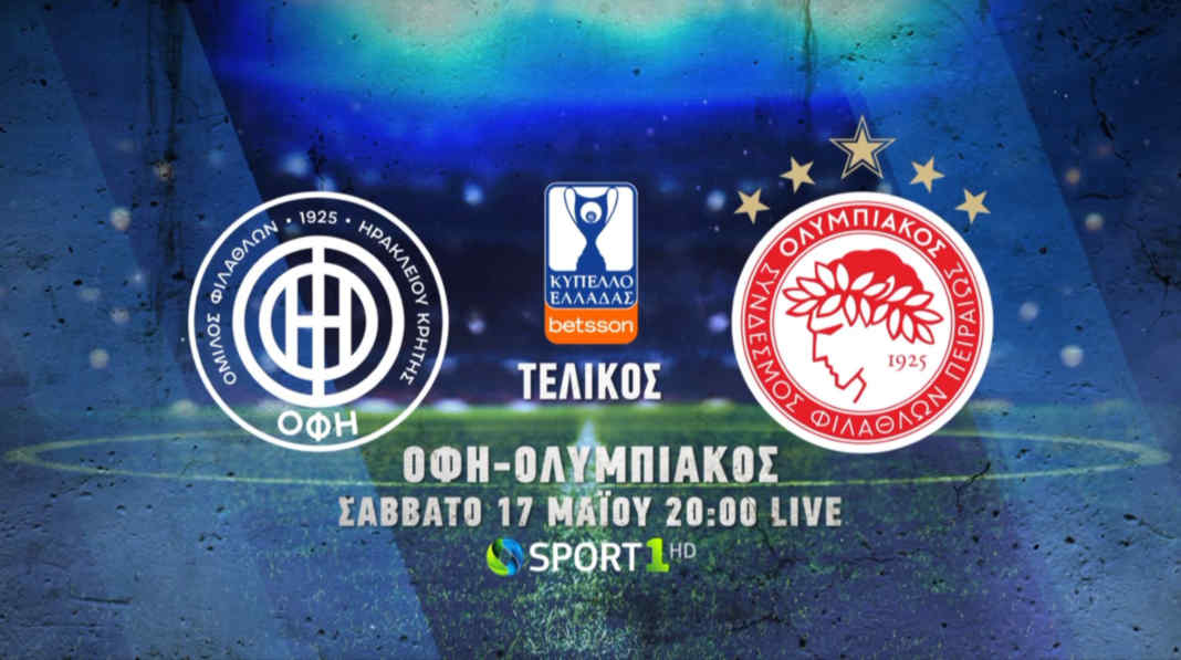 Ο μεγάλος τελικός του Κυπέλλου Ελλάδας Betsson έρχεται το Σάββατο 17/5 στην COSMOTE TV, με τον ΟΦΗ και τον Ολυμπιακό να «μονομαχούν» για το πολυπόθητο τρόπαιο. Η σέντρα του αγώνα θα γίνει στις 20.00, σε ζωντανή μετάδοση από το COSMOTE SPORT 1HD. Η δημοσιογραφική ομάδα της COSMOTE TV θα βρίσκεται στην «καρδιά» των εξελίξεων και θα μεταφέρει όλο το ρεπορτάζ μέσα από ειδικές εκπομπές.