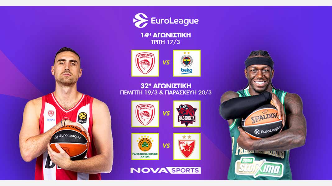 Πλούσιο μπασκετικό θέαμα έρχεται και αυτή την εβδομάδα με EuroLeague & EuroCup στο παρκέ του Novasports! Η EuroLeague, η κορυφαία ευρωπαϊκή διασυλλογική διοργάνωση, συνεχίζεται με αμείωτο ενδιαφέρον και τα βλέμματα στρέφονται στους αγώνες των ελληνικών ομάδων.