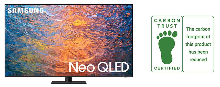 Τα μοντέλα Neo QLED του 2023 έλαβαν την πιστοποίηση αυτή, ως αναγνώριση των προσπαθειών της Samsung να μειώσει το βάρος των προϊόντων και την κατανάλωση ενέργειας τους κατά τη χρήση, σε σύγκριση με τα προηγούμενα μοντέλα. Τα έξι πιστοποιημένα μοντέλα περιλαμβάνουν τρεις οθόνες Neo QLED 8K και τρεις Neo QLED 4K. Καθώς η Samsung στοχεύει να επεκτείνει το εύρος αυτών των προσπαθειών, αναμένει να κερδίσει πιστοποίηση αποτυπώματος άνθρακα για περισσότερα από 20 μοντέλα φέτος στην τελευταία της σειρά τηλεοράσεων QLED, Crystal UHD και OLED, καθώς και σε οθόνες και προϊόντα ψηφιακής σήμανσης.