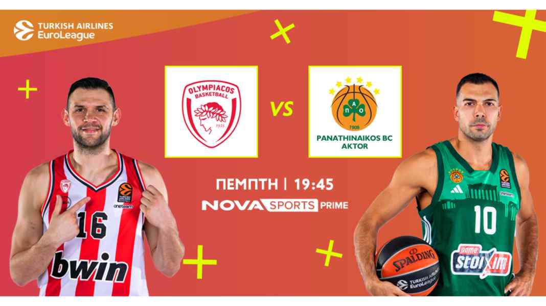 Το μεγάλο ντέρμπι Ολυμπιακός – Παναθηναϊκός AKTOR για την EuroLeague θα κριθεί αποκλειστικά στο παρκέ του Novasports και η κορυφαία δημοσιογραφική ομάδα θα είναι εκεί για να το καλύψει με τον αρτιότερο τρόπο! Οι λάτρεις της πορτοκαλί μπάλας την Πέμπτη 14 Μαρτίου στις 19:45 θα έχουν την ευκαιρία να απολαύσουν ζωντανά και αποκλειστικά στο Novasports Prime το ντέρμπι των «αιωνίων» για την 29η αγωνιστική της EuroLeague, της κορυφαίας ευρωπαϊκής διασυλλογικής διοργάνωσης στο χώρο του μπάσκετ.
