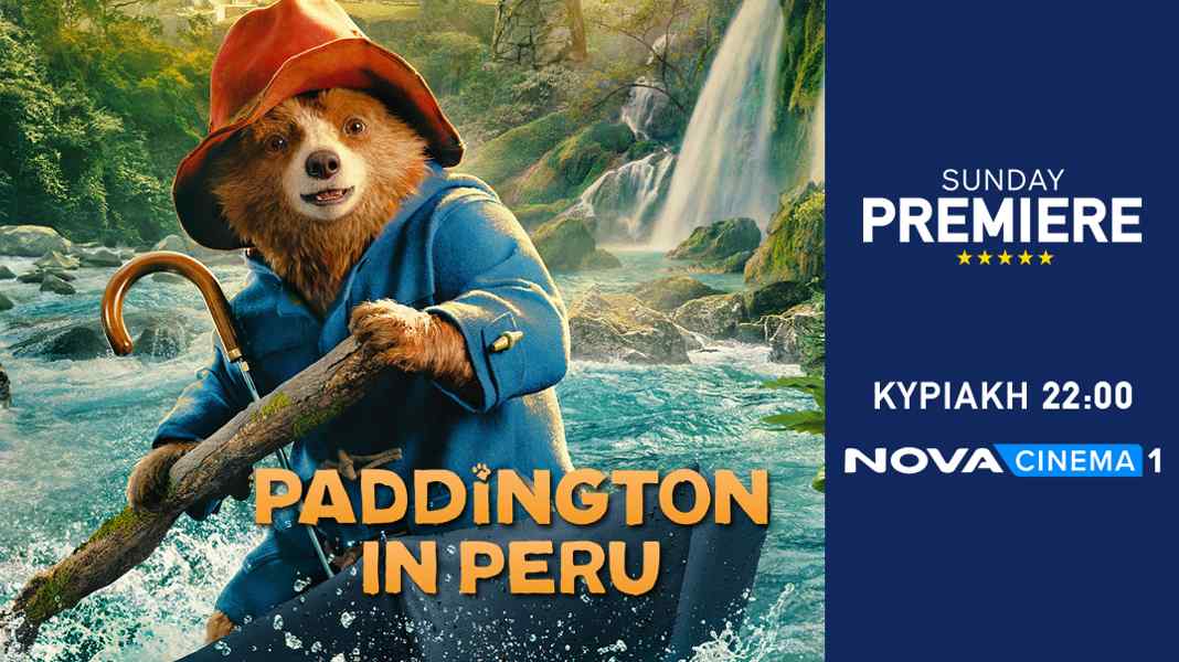 Τη μεταγλωττισμένη παιδική ταινία κινουμένων «Paddington in Peru» («Ο Πάντινγκτον στο Περού», 2024, διάρκειας 106’) με τις φωνές των Γιάννη Τσιμιτσέλη, Φώτη Πετρίδη, Στεφανίας Φιλιάδη, Έλενας Δελακούρα σε σκηνοθεσία του Dougal Wilson θα απολαύσουν όλα τα παιδιά την Κυριακή 24 Αυγούστου στις 22:00 στο Novacinema1, στη ζώνη Sunday Premiere της Nova!