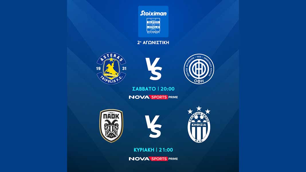 Αυτή η εβδομάδα όπως και όλη η υπόλοιπη σεζόν δεν χάνεται με τίποτα στη Nova και στο γήπεδο του Novasports! Οι φίλοι του ελληνικού ποδοσφαίρου θα έχουν την ευκαιρία να παρακολουθήσουν τις αναμετρήσεις ΠΑΟΚ – Κηφισιά (27/8, 21:00) και Αστέρας Τρίπολης – ΟΦΗ (26/8, 20:00) για την 2η αγωνιστική της Stoiximan Super League. Οι αγώνες του ελληνικού πρωταθλήματος θα πλαισιωθούν και με τις αγαπημένες εκπομπές των φιλάθλων «Η Ώρα των Πρωταθλητών» με τον Γιαννίκο Δούσκα, «Monday Football Club» με τον Ντέμη Νικολαϊδη και τον Γιάννη Πάγκο.