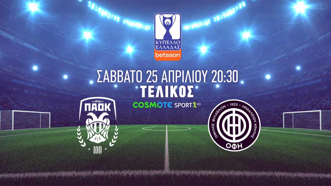 20:30 ΠΑΟΚ-ΟΦΗ, Κύπελλο Ελλάδας Betsson, Τελικός, COSMOTE SPORT 1HD & START
