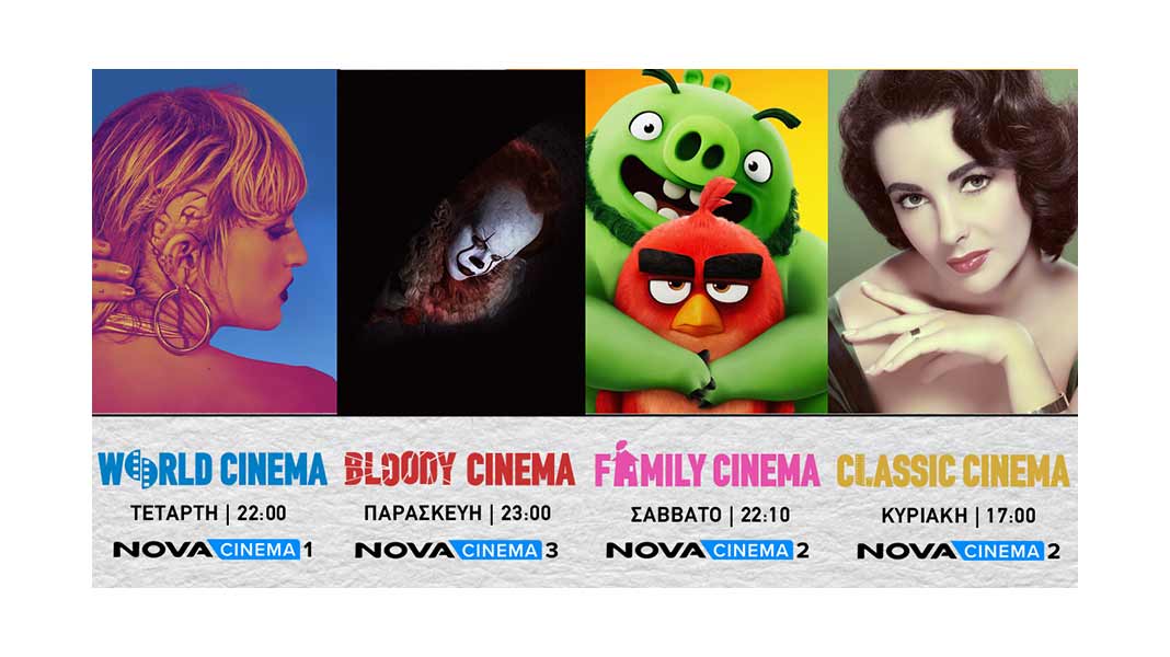 Οι 5 ανανεωμένες σε ύφος εβδομαδιαίες ζώνες, World Cinema, Bloody Cinema, Classic Cinema, Family Cinema και Sunday Premiere προσφέρουν μια ισχυρή ανανέωση του cine περιεχομένου της Nova και τεράστιες επιλογές για τους συνδρομητές.