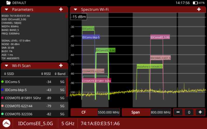 Το πραγματικό κέρδος με ένα τέτοιο όργανο σχετικά με το WiFi, είναι ότι μπορούμε να προβάλλουμε το θόρυβο που έχει το φάσμα, ΕΠΑΝΩ στα τραπεζοειδή και να λαμβάνουμε μέτρα κατά των παρεμβολών.