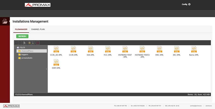 Διαχείριση αρχείων: Με τον File Manager, μπορείτε να πραγματοποιήσετε λήψη και αποστολή αρχείων μεταξύ του οργάνου και του υπολογιστή σας, όπως τα channel plans, αρχεία loggers και τα screenshots που έχετε αποθηκεύσει.