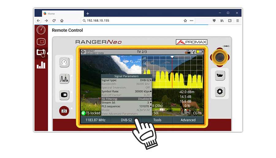 Τα πεδιόμετρα PROMAX RANGER Neo μπορούν να ελεγχθούν από απόσταση και οπουδήποτε στον κόσμο μέσω Internet, χρησιμοποιώντας μόνο ένα πρόγραμμα περιήγησης ιστού. Δεν χρειάζεται να εγκαταστήσετε επιπλέον λογισμικό.