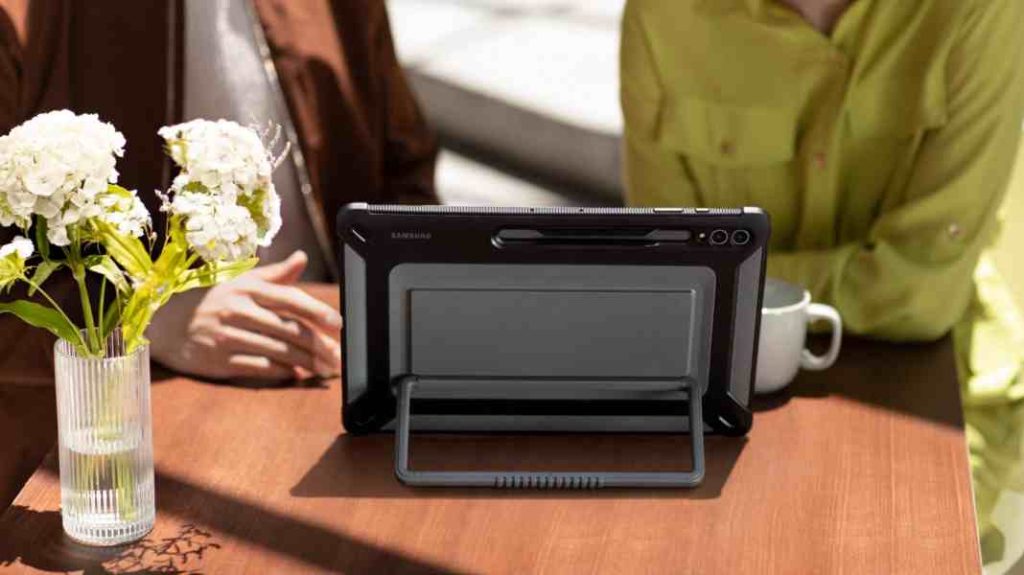 Προκειμένου να ταιριάζει με τις κορυφαίες εμπειρίες λογισμικού, το υλικό της σειράς Galaxy Tab S9 διαθέτει τα ίδια εμβληματικά σχεδιαστικά χαρακτηριστικά και την ίδια εντυπωσιακή διάταξη κάμερας με τα κορυφαία smartphones της σειράς Galaxy S. Με πάχος μόλις 5,5 χιλιοστά για το Tab S9 Ultra, η σειρά Galaxy Tab S9 είναι ελαφριά και λεπτή, αλλά και ανθεκτική με πιστοποίηση IP68. Επίσης, τα προϊόντα της σειράς είναι κατασκευασμένα για να αντέχουν σε χτυπήματα και γρατζουνιές, αφού οι συσκευές είναι ενισχυμένες με Armor Aluminum. Για τους χρήστες οι οποίοι έχουν τις καλύτερες ιδέες σε απροσδόκητα μέρη, τα προϊόντα της σειράς αποτελούν τον τέλειο συνεργάτη, αφού μπορούν να χρησιμοποιηθούν σε ιδιαίτερα περιβάλλοντα και να αντέξουν κατά τη διάρκεια μιας «γεμάτης» ημέρας. Η νέα θήκη Outdoor Cover[19] προσφέρει άνεση στους χρήστες που αναζητούν μεγαλύτερη προστασία.