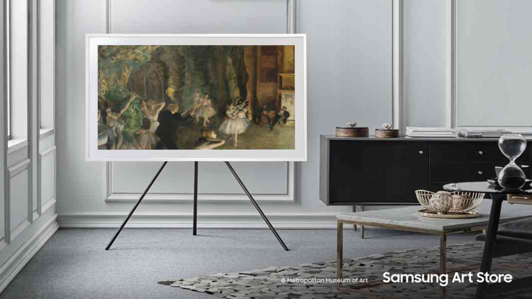 Το Samsung Art Store είναι διαθέσιμο αποκλειστικά στην τηλεόραση The Frame 2023 της Samsung. Πρόκειται για μια 4K smart TV με δυνατότητα προβολής ενός δισεκατομμυρίου αποχρώσεων που χάρη στο πλαίσιο εικόνας που προβάλει ζωντανές, ρεαλιστικές εικόνες τηλεόρασης όταν είναι ενεργοποιημένη και εντυπωσιακών έργων τέχνης όταν είναι απενεργοποιημένη. Χάρη στην οθόνη Matte Display, οι ανακλάσεις του φωτός ελαχιστοποιούνται, διαθέτοντας ένα φινίρισμα που μοιάζει με καμβά, ιδανικό για την προβολή ψηφιακών συλλογών από το Samsung Art Store μαζί με προσωπικές φωτογραφίες και έργα τέχνης. Οι χρήστες μπορούν να επιλέξουν από μια συλλογή πλαισίων τηλεόρασης που μοιάζουν με κορνίζα για να προσαρμόσουν το χώρο[3]. Επιπλέον, μπορούν να αναβαθμίσουν τη λεπτή βάση τοίχου που περιλαμβάνεται στη συσκευασία με τη νέα, αυτόματη περιστρεφόμενη βάση τοίχου για προβολή περιεχομένου κάθετα ή οριζόντια (πωλείται ξεχωριστά), ώστε όλα τα εντυπωσιακά έργα τέχνης να μπορούν να προβληθούν ακριβώς όπως τα σχεδίασε ο καλλιτέχνης.