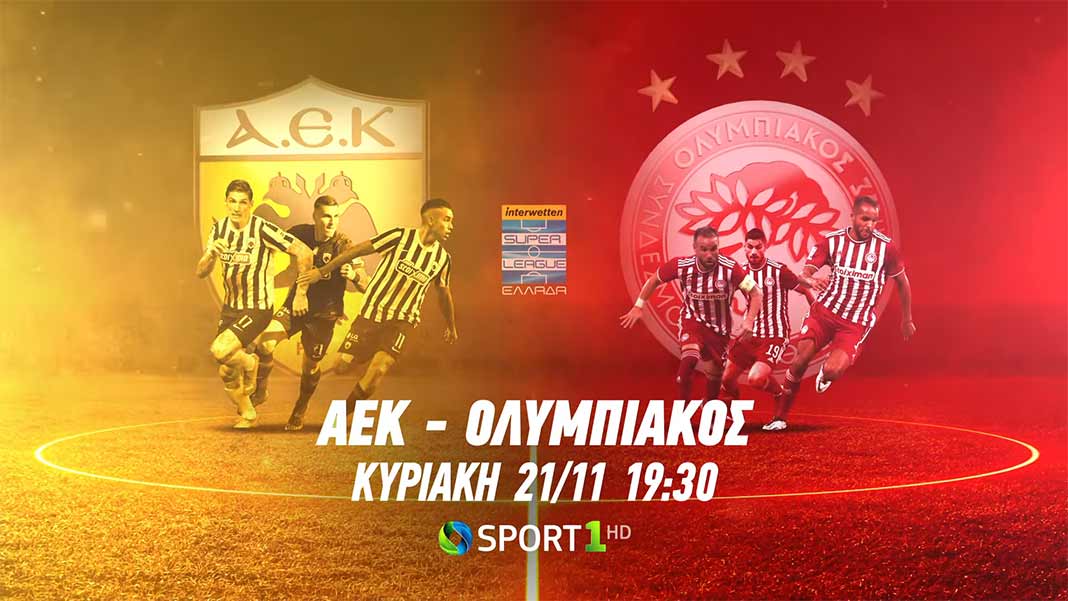 Την ίδια ημέρα (Κυριακή 21/11), οι προβολείς θα στραφούν και στα γήπεδα της Super League Interwetten, με την αναμέτρηση των δυο κορυφαίων της βαθμολογίας, να ξεχωρίζει στη 10η αγωνιστική. Το σφύριγμα της έναρξης θα δοθεί στις 19.30 στο ΟΑΚΑ, όπου η ΑΕΚ θα υποδεχτεί τον Ολυμπιακό. Το ματς θα μεταδοθεί από το COSMOTE SPORT 1HD. Στο ίδιο κανάλι, θα προηγηθεί Pregame εκπομπή (18.00) με όλο το ρεπορτάζ και τις τελευταίες εξελίξεις πριν από την παράταξη των ομάδων στον αγωνιστικό χώρο.