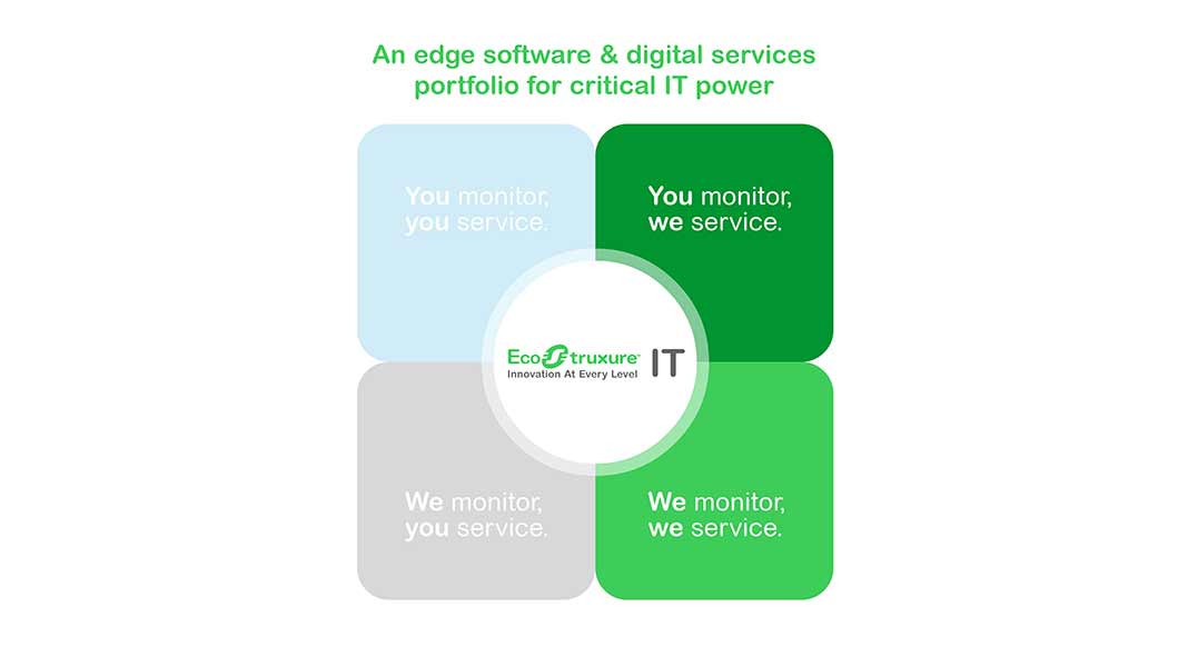 Το πρόγραμμα EcoStruxure IT Software & Digital Services προσφέρει ευελιξία στη διαχείριση υπηρεσιών διευκολύνοντας τους παρόχους ΙΤ λύσεων ως προς την αναβάθμιση των υπηρεσιών τους. Με γνώμονα τις ανάγκες των παρόχων IT λύσεων, το πρόγραμμα σχεδιάστηκε ώστε να προσφέρει προσαρμόσιμο portfolio λύσεων δίνοντας τη δυνατότητα προηγμένης απομακρυσμένης παρακολούθησης 24ώρες το 24ωρο για όλη την εβδομάδα, και απομακρυσμένης/επιτόπιας υποστήριξης με την επιλογή περαιτέρω αξιοποίησης της επένδυσης σε υπηρεσίες ή την ανάθεση σε εμπειρογνώμονες της Schneider Electric. Το χαρτοφυλάκιο ψηφιακών υπηρεσιών της Schneider Electric ενεργοποιείται από την πλατφόρμα EcoStruxure IT, που υποστηρίζει την επιτυχημένη ανάπτυξη, παρακολούθηση και συντήρηση στο edge. Οι πάροχοι IT λύσεων που συμμετέχουν στο πρόγραμμα mySchneider μπορούν να επιλέξουν το κατάλληλο λογισμικό και τις ψηφιακές υπηρεσίες, ανάλογα με το επιχειρηματικό μοντέλο και τις ανάγκες των πελατών τους.