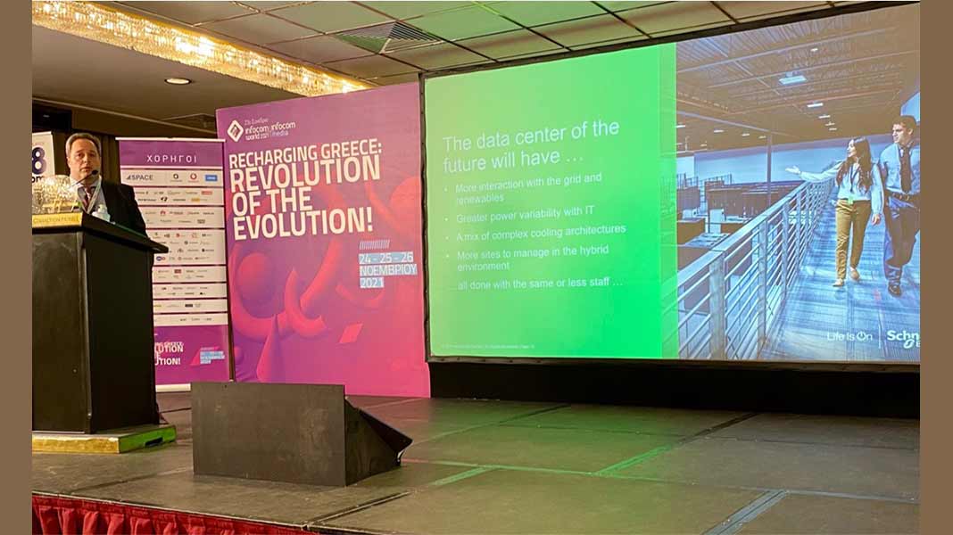 Η Schneider Electric, πρωτοπόρος στον ψηφιακό μετασχηματισμό της διαχείρισης ενέργειας και του αυτοματισμού, συμμετέχει ως Silver χορηγός στο 23ο Infocom World, το μεγαλύτερο συνέδριο για τον κλάδο των Τηλεπικοινωνιών στην Ελλάδα. To συνέδριο, που πραγματοποιήθηκε στις 24 Νοεμβρίου με φυσική παρουσία και συνεχίζεται διαδικτυακά από τις 25 έως τις 26 Νοεμβρίου 2021, έχει στο επίκεντρο του τις επενδύσεις σε νέες τεχνολογικές υποδομές και λύσεις καθώς και την αξιοποίηση τους από τον δημόσιο και ιδιωτικό τομέα. Οι συμμετέχοντες, είχαν την ευκαιρία να παρακολουθήσουν στις 24/11, την εξαιρετικά ενδιαφέρουσα ομιλία του κ. Θανάση Τσικόγια, Data Center Solution Architect, της APC by Schneider Electric με θέμα “Sustainability on Data Centers’’, στην οποία αναφέρθηκε στη φιλοσοφία της Schneider Electric, που βασίζεται σε 5 άξονες για να πετύχει την ολοκληρωμένη βιωσιμότητα των data centers.