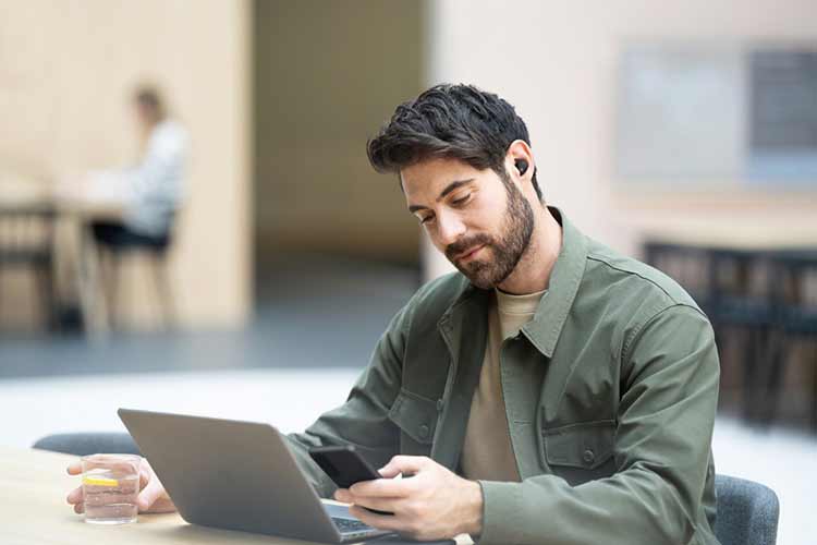 Τα WF-1000XM5 διαθέτουν τώρα την καλύτερη ποιότητα κλήσεων που έχει προσφέρει ποτέ η Sony[iv], αποδίδοντας τη φωνή σας καθαρά σε κάθε περίσταση, είτε βρίσκεστε στο γραφείο, είτε εργάζεστε από το σπίτι, είτε σε δημόσιο χώρο είτε σε χώρο με θόρυβο.
